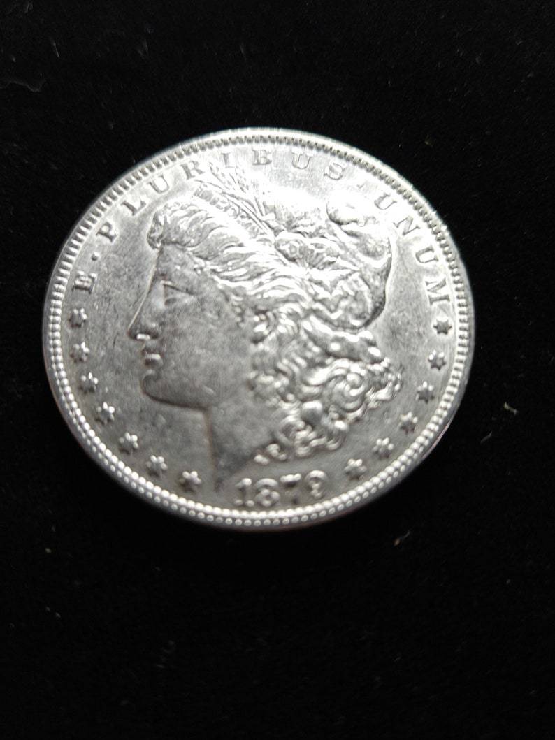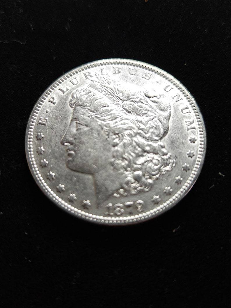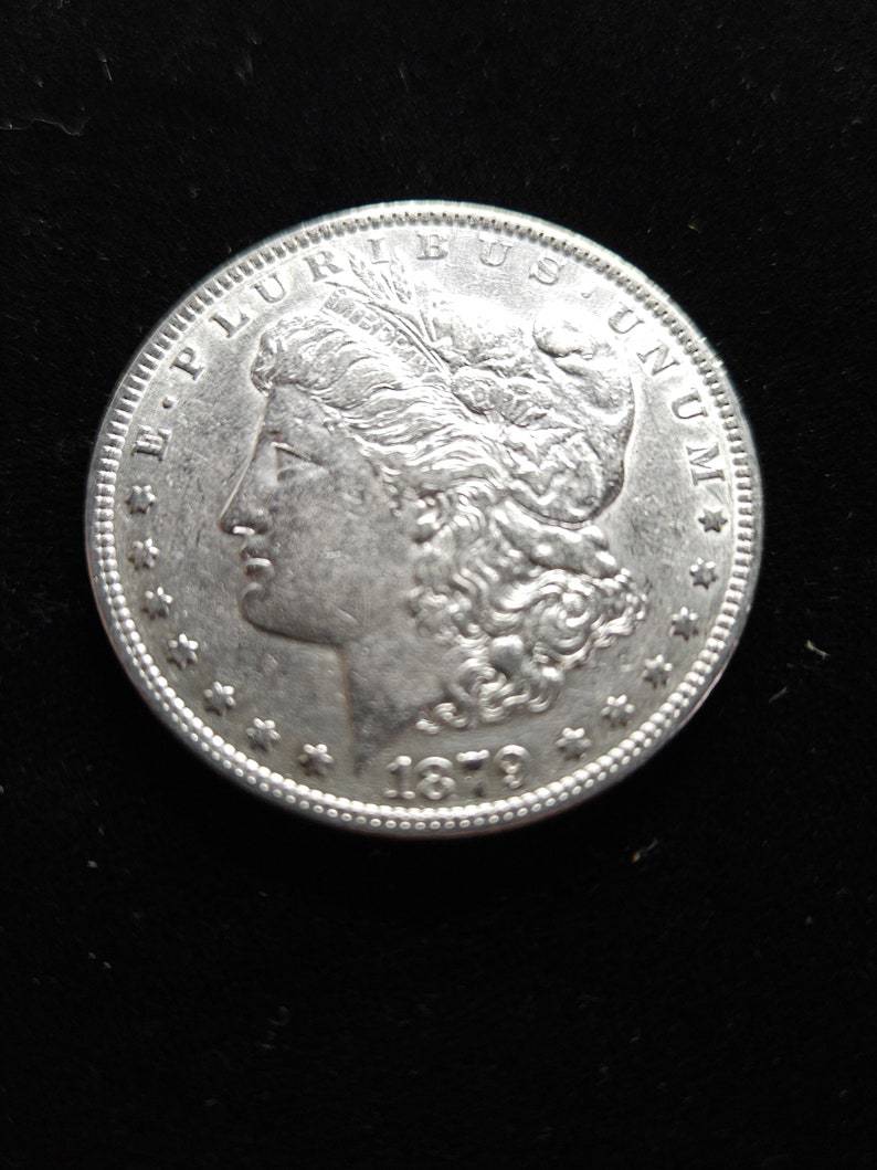 100% Genuine 1879 Silver Morgan Dollar AU Key date Lot#661. The coin/ bar pictured is the exact item you will recieve. Check out our reviews! Buy with confidence. Item will be shipped USPS First class insured in a secure padded bubbler envelope 2-4 Business days after receiving your order. If this will be a gift feel free to send us the message you wish displayed.Acrylic Display stand can be added to this order for an additional 3.99. If the option to add display stand is not added to this listing , please message me that you would like the stand included. Orders over $100 will receive a free Token. Orders over $300 will all be shipped with Signature Confirmation and Insurance. If you would like to order multiple items on this website, please message me directly so I can send you a customized invoice at a discount. (UE)