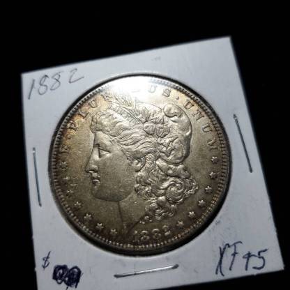 We accept Crypto - Message first before checking out! 1882 Silver Morgan Dollar ! XF/AU Key date - Lot# 810. The coin/ bar pictured is the exact item you will receive. Check out our reviews! Buy with confidence. Item will be shipped USPS First class insured in a secure padded bubbler envelope 1-3 Business days after receiving your order. Please leave feedback after you receive your order. If this will be a gift feel free to send us the message you wish displayed. . Orders over $300 will all be shipped with Signature Confirmation and Insurance. If you would like to order multiple items on this website, please message me directly so I can send you a customized invoice at a discount. (NK)