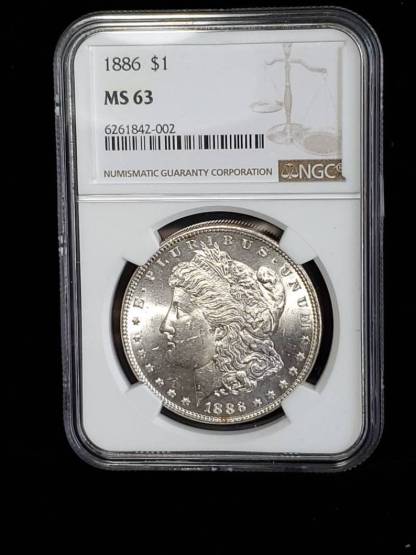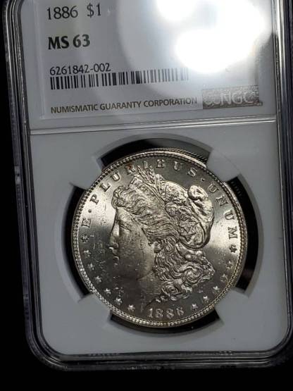 We accept Crypto - Message first before checking out! 1886 MS 63 Silver Morgan Dollar, NGC MS 63 Silver Coin . Blast White! Lot # 1491 certified by NGC and sealed in an airtight holder. The coin/ bar pictured is the exact item you will receive. Check out our reviews! Buy with confidence. Item will be shipped USPS First class insured in a secure padded bubbler envelope 1-3 Business days after receiving your order. If this will be a gift feel free to send us the message you wish displayed. . Orders over $300 will all be shipped with Signature Confirmation and Insurance. If you would like to order multiple items on this website, please message me directly so I can send you a customized invoice at a discount.