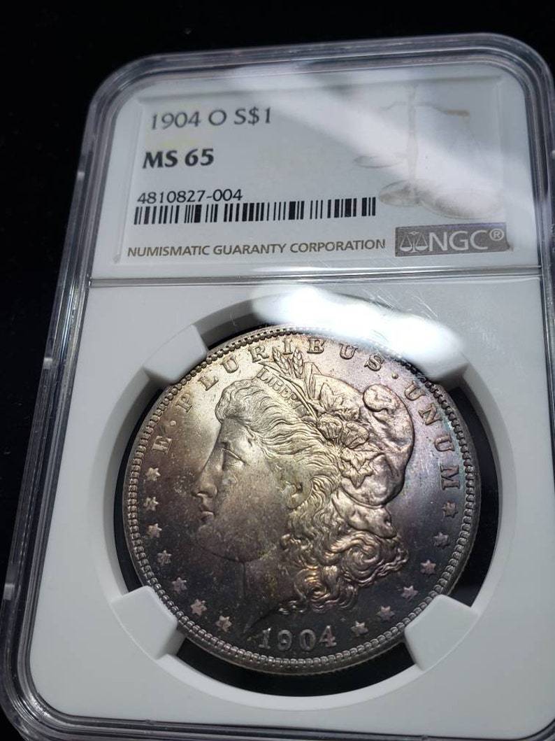 We accept Crypto - Message first before checking out! 1904 O Morgan Silver Dollar MS65 NGC Graded - Beautiful color - Lot# 1465. This coin is Certified MS63 by NGC. Shipped Priority. . Orders over $300 will all be shipped with Signature Confirmation and Insurance. If you would like to order multiple items on this website, please message me directly so I can send you a customized invoice at a discount.